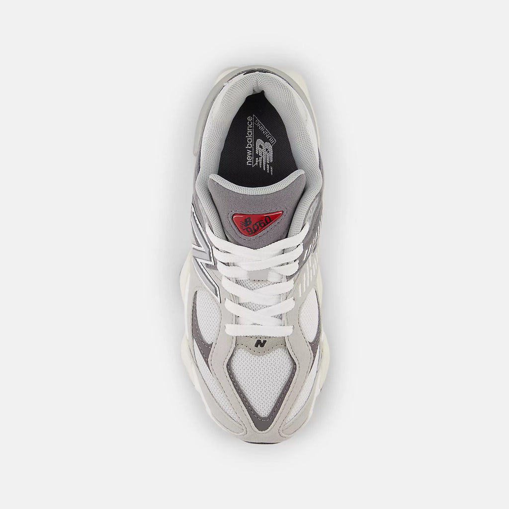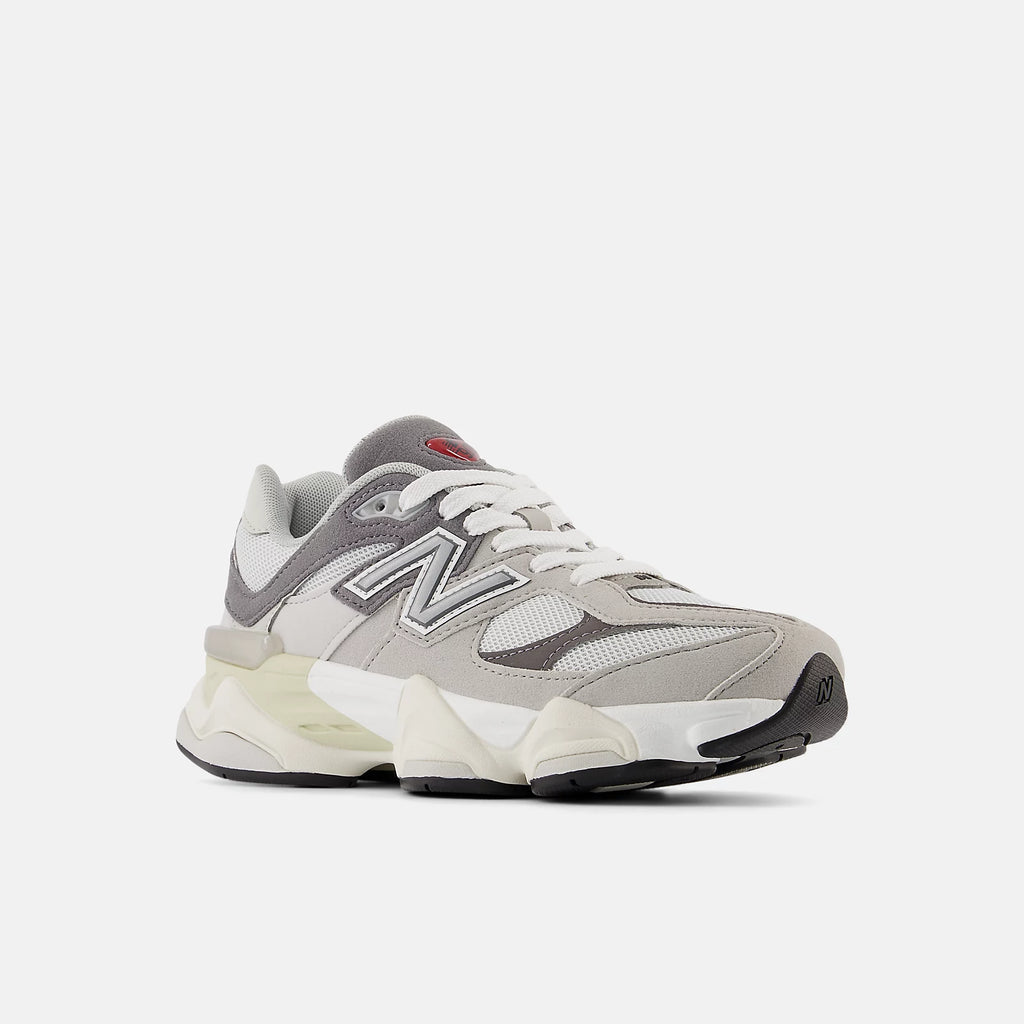 The 9060, available for kids, is a new expression of the refined style and innovation-led design of the classic 99X series. The 9060 reinterprets familiar 99X elements with a warped sensibility inspired by the proudly futuristic, visible tech aesthetic of the Y2K era. Sway bars, taken from the 990, are expanded and utilized throughout the entire upper for a sense of visible motion, while wavy lines and scaled up proportions on a sculpted pod midsole place an exaggerated emphasis on the familiar cushioning platforms of ABZORB and SBS.
