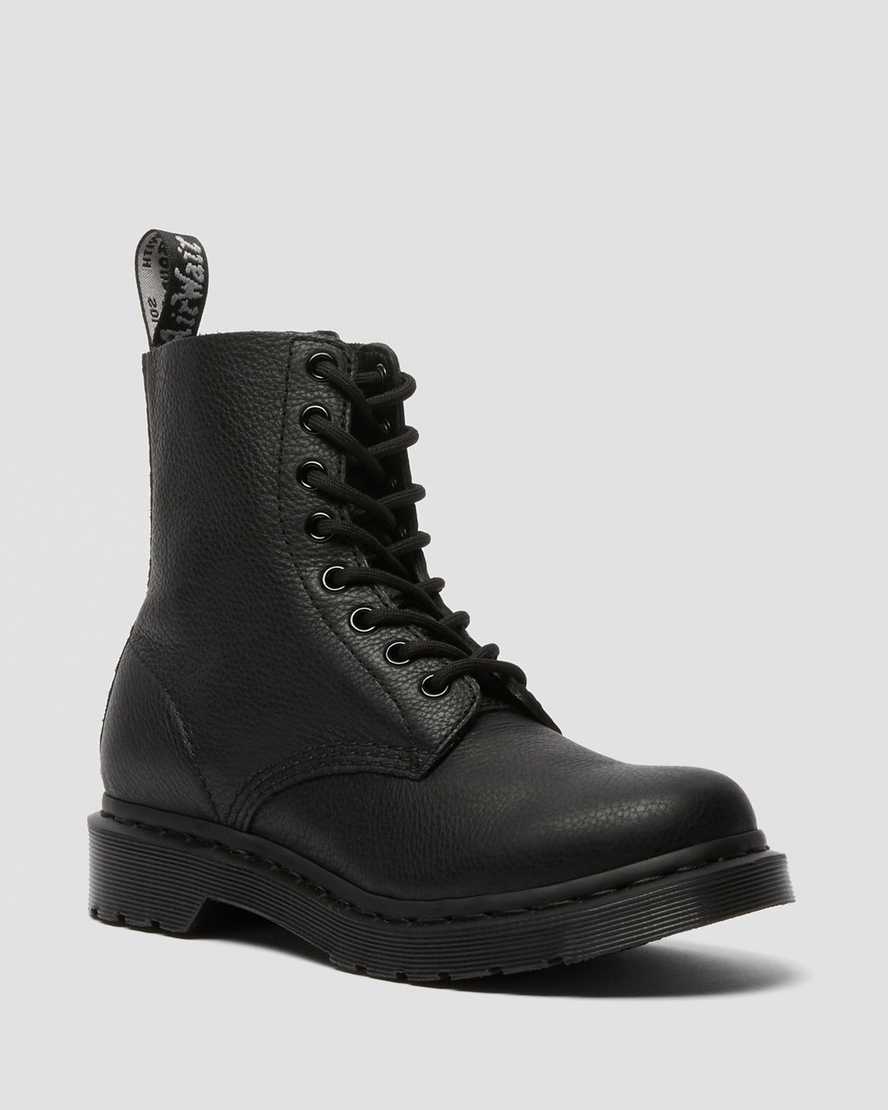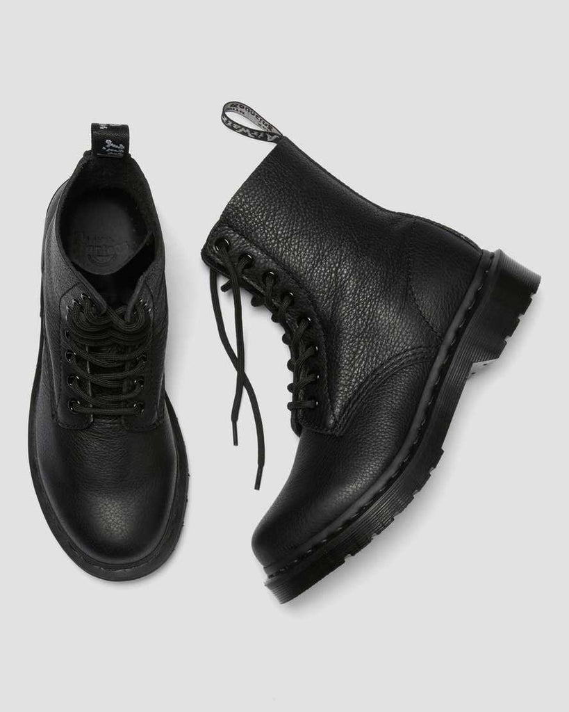 Le 1460 Pascal conserve toute l'histoire et la durabilité de l'original et emblématique à 8 yeux - et tout l'ADN, comme une boucle de talon scénarisée, des coutures visibles et des bords rainurés sur une semelle à coussin d'air. Et maintenant, il est servi en noir monochrome de la pointe aux pieds, dans le cuir Virginia ultra doux et incassable.