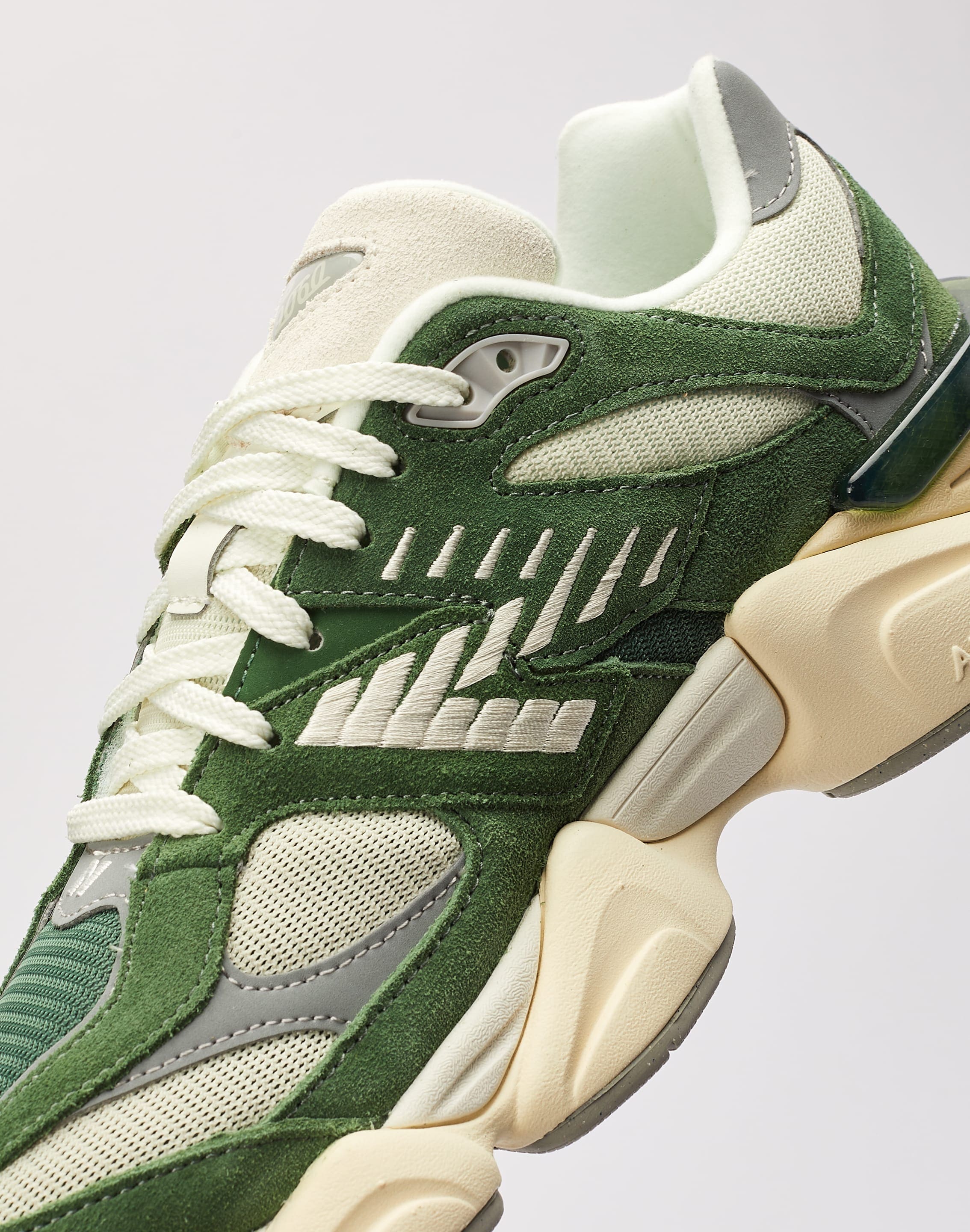 The 9060 is a new expression of the refined style and innovation-led design that have made the 99X series home to some of the most iconic models in New Balance history. The 9060 reinterprets familiar elements sourced from classic 99X models with a warped sensibility inspired by the proudly futuristic, visible tech aesthetic of the Y2K era. Sway bars, taken from the 990, are expanded and utilized throughout the entire upper for a sense of visible motion, while wavy lines and scaled up proportions on a sculpted pod midsole place an exaggerated emphasis on the familiar cushioning platforms of ABZORB and SBS.