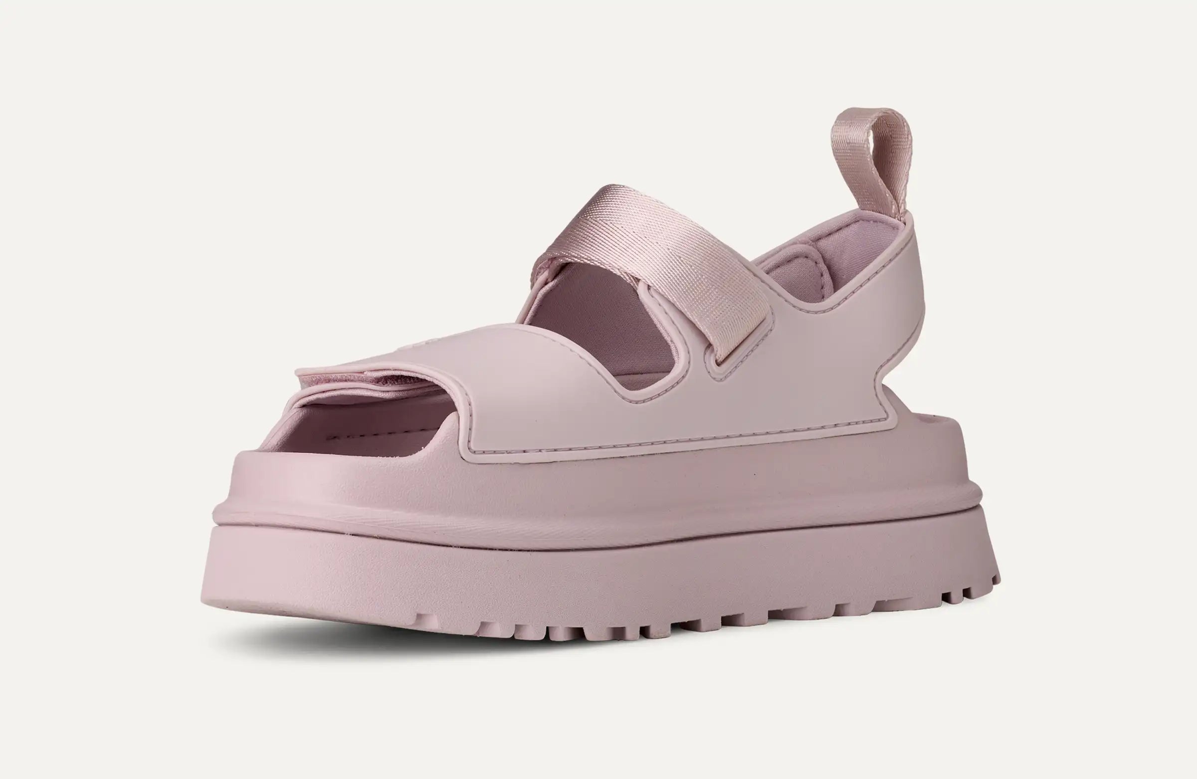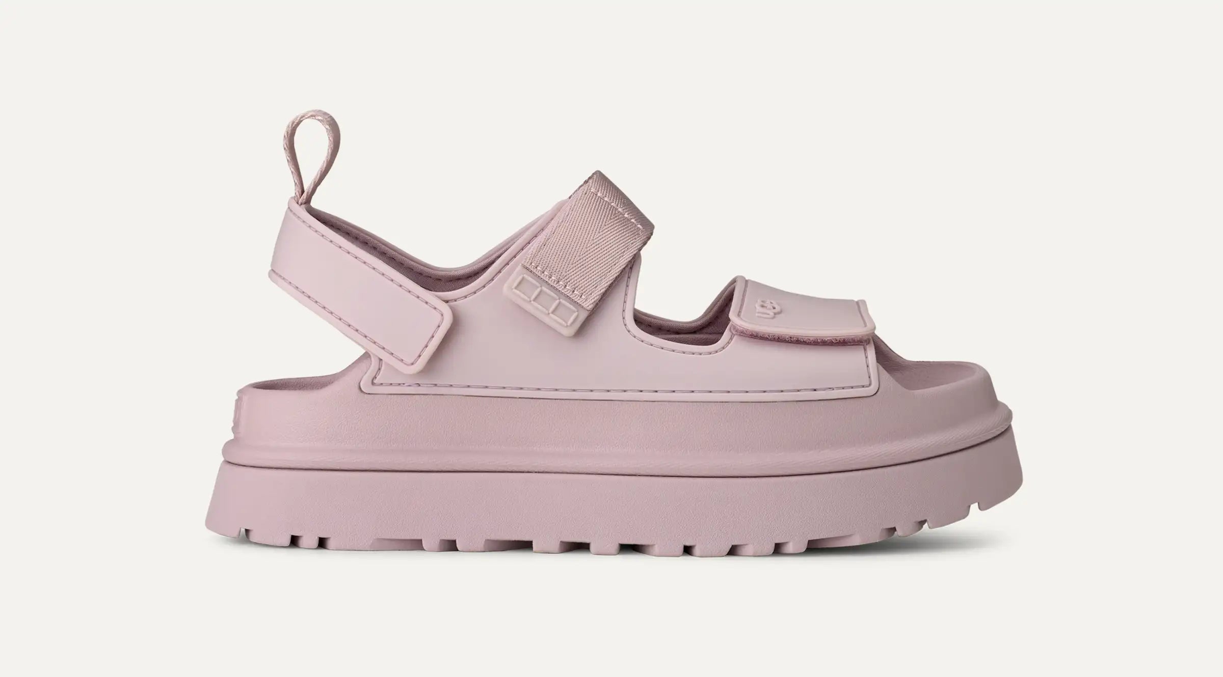 She'll bring the bold. Our GoldenGlow is a fully adjustable sandal. It's made from springy and supportive sugarcane EVA that's ready to wear through rain and shine. Stacked on a platform with a lug sole and complete with a grippy footbed, this pair looks as dynamic as it'll make you feel.