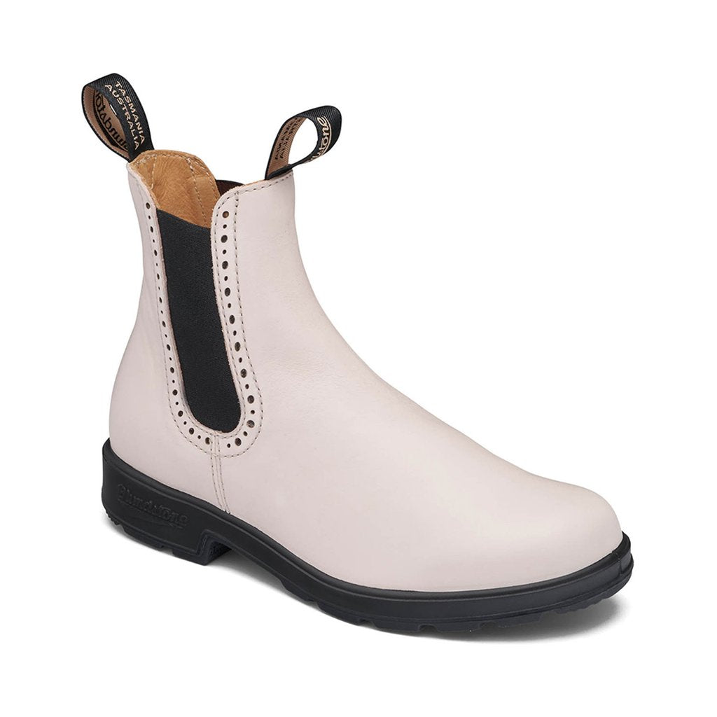 Blundstone Originals Series Women's Hi-Top in Pearl. This pearly white leather boot is cut a little higher against the elements, with dry, all-day comfort and a pearl-y leather "shell" that ages to perfection. As you would expect, Pearls look perfect with everything.