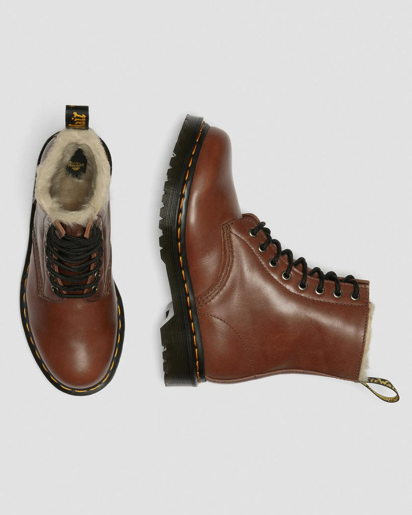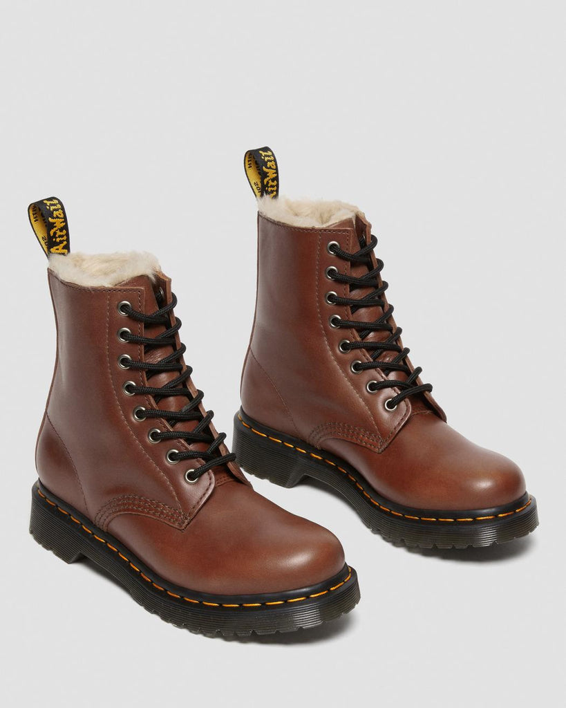 Dr Martens - 1460 Serena Saddle Tan Farrier Women's Faux Fur Boots 27782225
